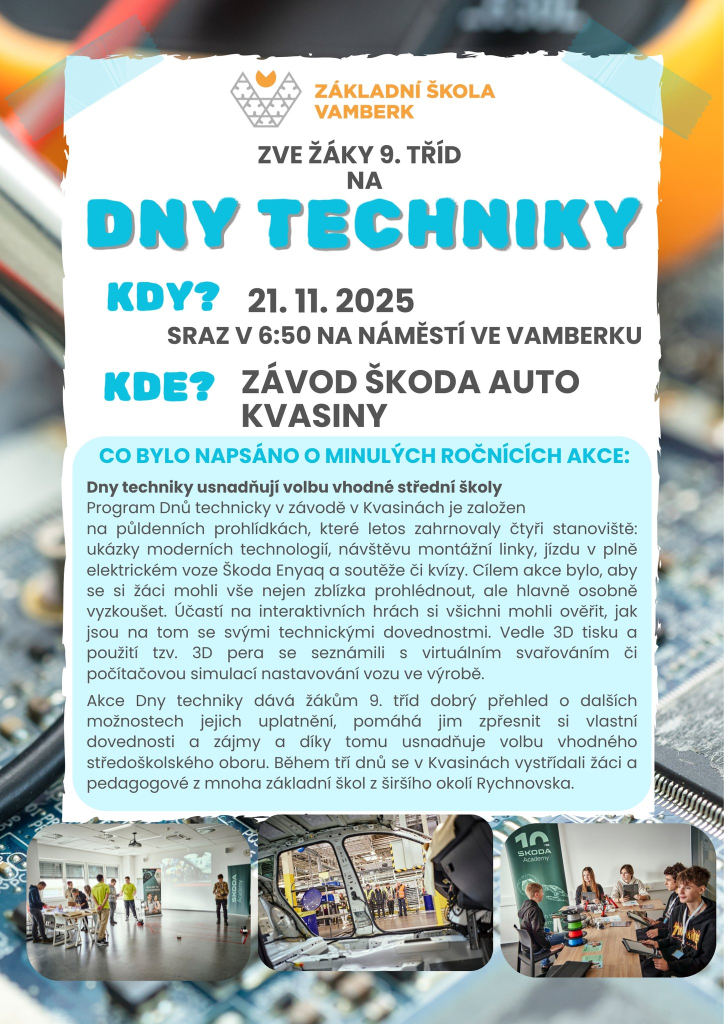 Exkurze pro žáky 9. ročníku do závodu ŠKODA AUTO Kvasiny.